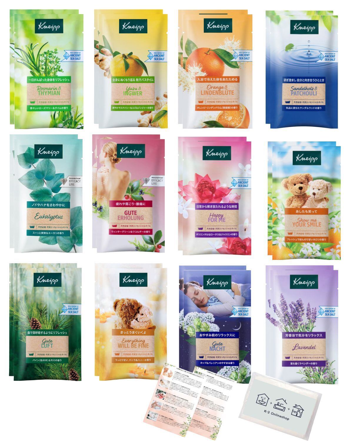 クナイプ バスソルト 50g 12種24袋セット ギフト 入浴剤 アソート 詰合わせ 入浴剤の正しい使い方と効果を高める10のポイント ガイド付 オリジナルティシュ付 | K-3 Online Shop